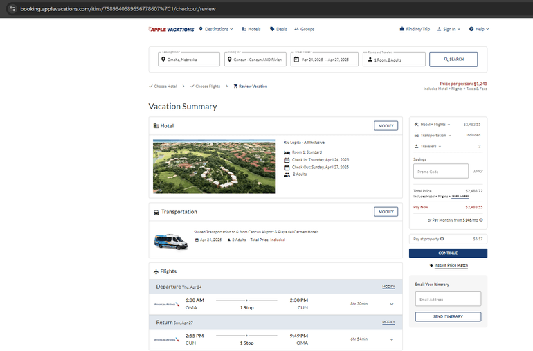 The same package for the same dates from Omaha is $1,245 per person.