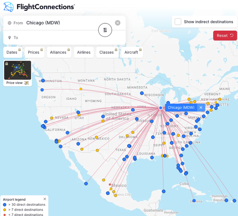 While it is an international airport, Chicago-Midway primarily serves domestic destinations and is a hub for Southwest Airlines. This is the busiest airport in its network. It also offers flights with a few other full-service carriers, such as Delta Air Lines, and low-cost options like Allegiant Air and Volaris.