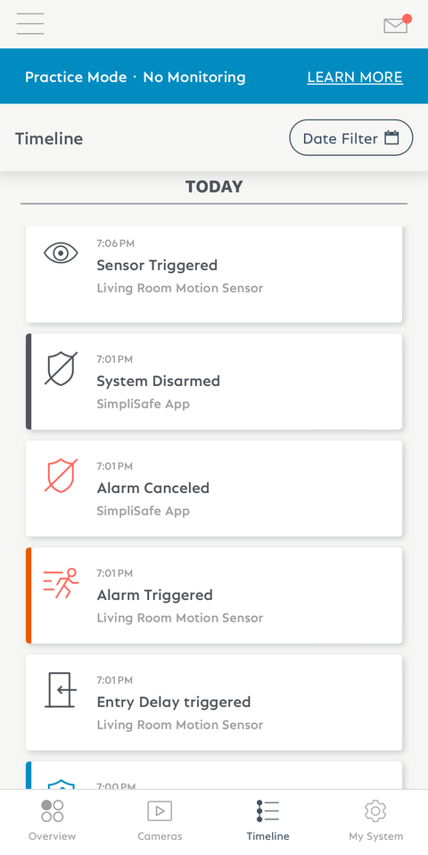We like that SimpliSafe puts the system in “Practice Mode” for the first three days after you subscribe to professional monitoring, so you can get comfortable arming the sensors without accidentally triggering an emergency dispatch. We set off a lot of alarms in the first day or two, so this was very helpful.