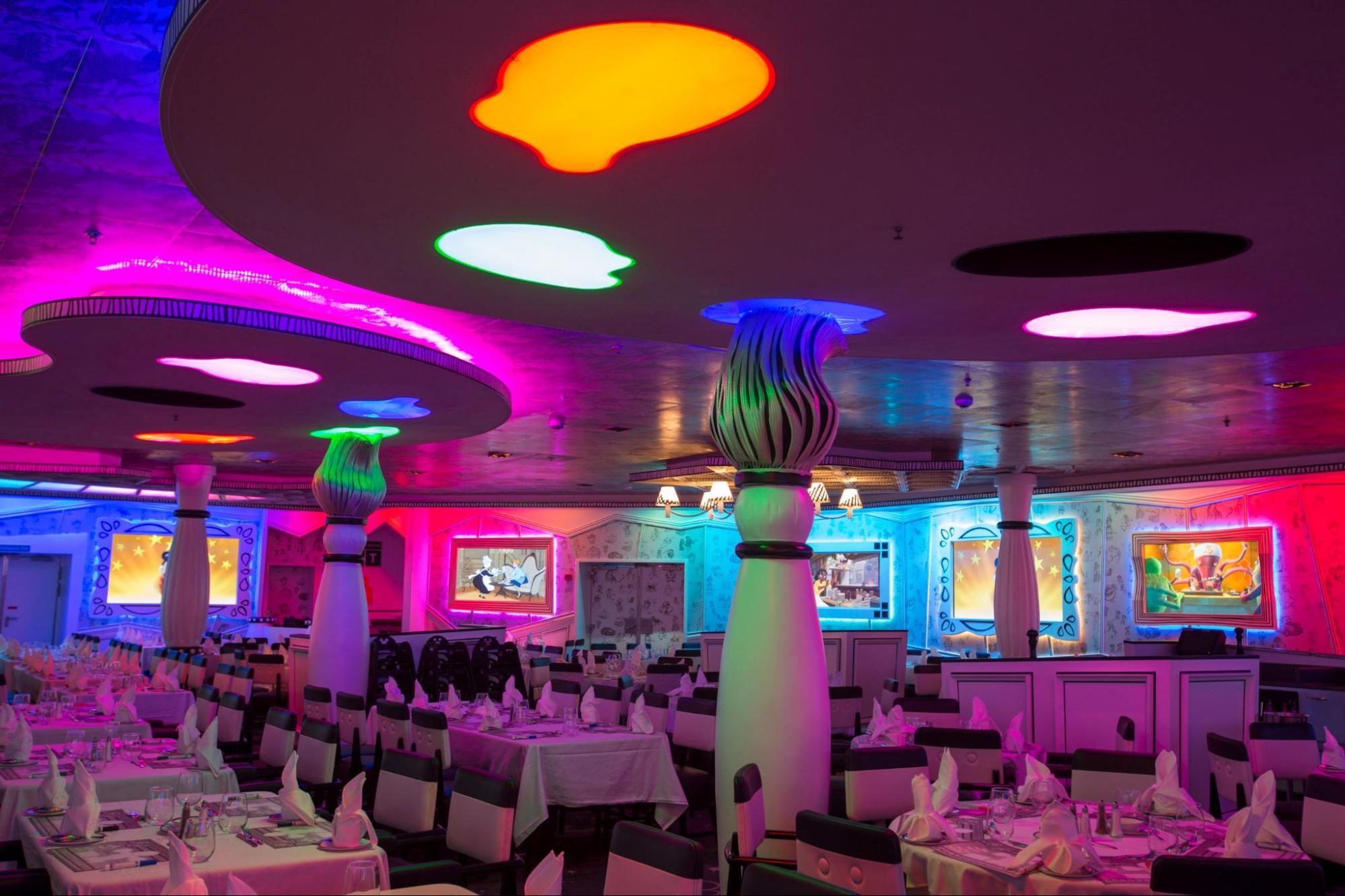 Meals are included at most of the Disney Wonder’s restaurants, including Animator’s Palate, which is a dinner-show type restaurant. (Photo courtesy of Disney Cruise Line)