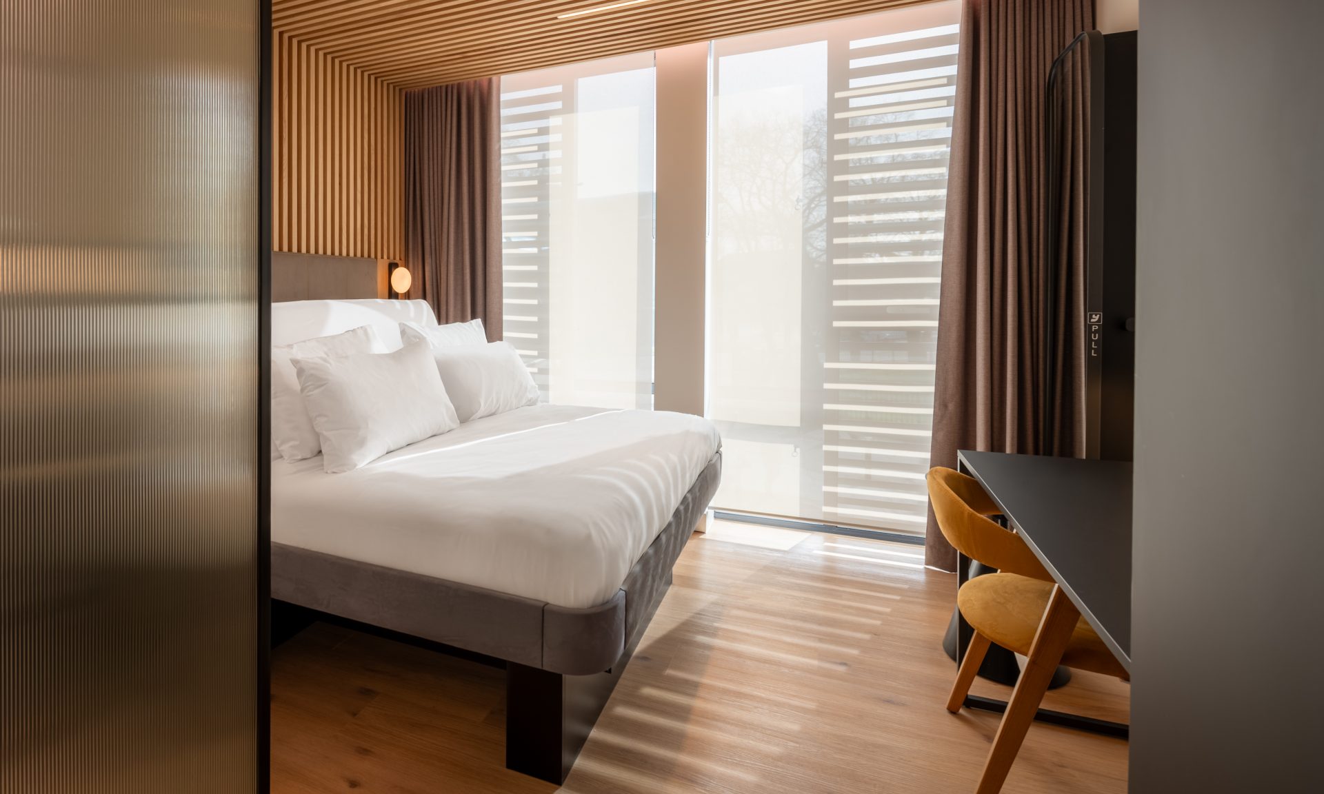 No, you won't sleep on a shelf. Instead, Yotel hotels embrace compact rooms. Some have bunk beds, though there are even some larger accommodations and suites.